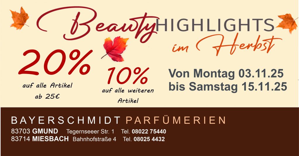 Die BAYERSCHMIDT PARFÜMERIEN sind seit über 60 Jahren die Privatparfümerie am Tegernsee mit Filialen in Gmund, Miesbach, Oberaudorf und Brannenburg vertreten. Sie finden bei uns Parfums, Damendüfte, Herrenduft und Gesichtspflege. Wir führen eine große Auswahl an starken Marken wie Biotherm, CHANEL, Lancôme, GUCCI, Prada, Sisley und viele mehr. Daneben auch Naturkosmetik von Trettl True aus Bad Reichenhall, Dr. Bronners, Annemarie Börlind. Die Mitarbeiterinnen in unseren Parfümerien verpacken Ihre Geschenke und Geschenkgutscheine individuell und kreativ.
